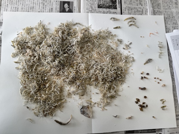 12月10日(水)河川研究班の10名が、本庄市立仁手小学校5年生児童に「水の生物」というテーマで2時間続きの講義を行いました。5時限目は本庄市内の河川に住む生物や外来種について、楽しいクイズを交えて紹介し、6時限目は海の環境を考えるために、未精製のチリメンジャコからシラス以外の生き物、ちりめんモンスターを探す作業を行いました。それぞれが気に入ったちりめんモンスターとラミネートフィルムを使って、オリジナルの栞も作成することができました。