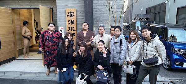 1月4日(日)朝10時〜11時半、相撲部屋である安治川部屋を見学する機会を得ました。安治川部屋は昨年の九州場所で初優勝を飾り現在大関の安青錦(ウクライナ出身)が所属しています。見学会には本庄学院・高等学院・早実から保護者を含めて40名が参加しました。