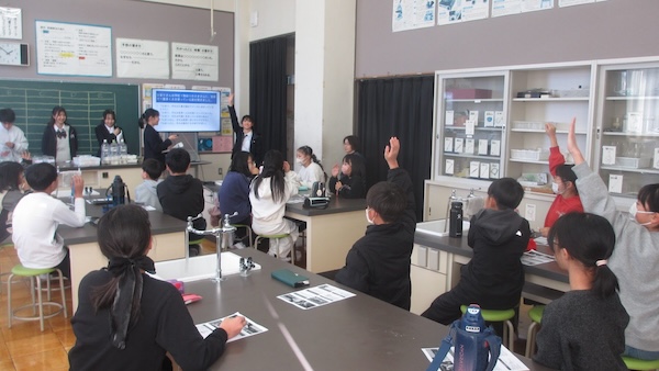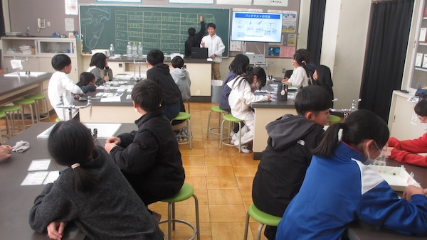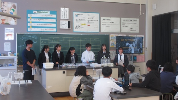 本庄高等学院は、本庄プロジェクト推進室のご協力の下、地域貢献活動として本庄市内の小学校における総合学習支援を行っています。1月14日(水)には、秋平小学校で「河川の水質」をテーマに総合学習支援プログラムを実施し、河川研究班の6名が講師を務めました。