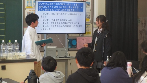 5時限目は「水について考えよう!」と題し、クイズに挑戦しながら、世界の水問題や汚染物質、水資源の大切さについて学んでもらいました。授業は学院生たちが工夫を凝らし、難しい内容も分かりやすい会話形式で進められ、小学生たちの理解を効果的に促していました。また、生活排水の汚れを減らすためのメッセージも、小学生にしっかりと伝えることができました。