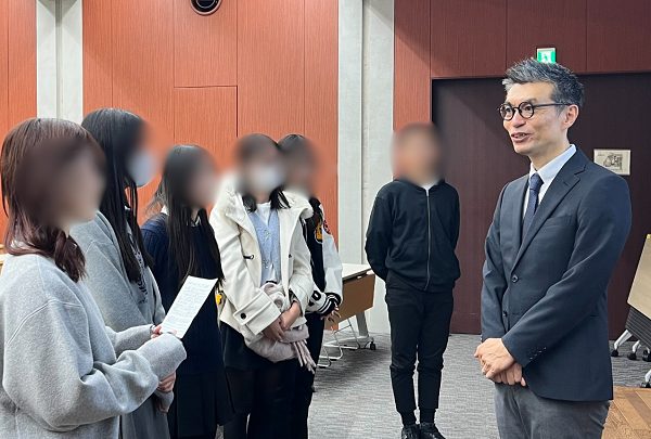 また、高村先生のご配慮により、学生のグループに高校生も加えていただき、グループディスカッションが行われました。テーマは「現在、司法が積極主義へと変化してきた理由は何か」という難度の高いものでしたが、生徒たちは講義内容を理解し、大学生の議論に学びながらも、自らの考えを整理して意見を述べるなど、主体的にグループワークに取り組んでいました。今回の講義への参加は、司法の役割を多角的に考えるとともに、今後の学びを深める上で貴重な経験となりました。
