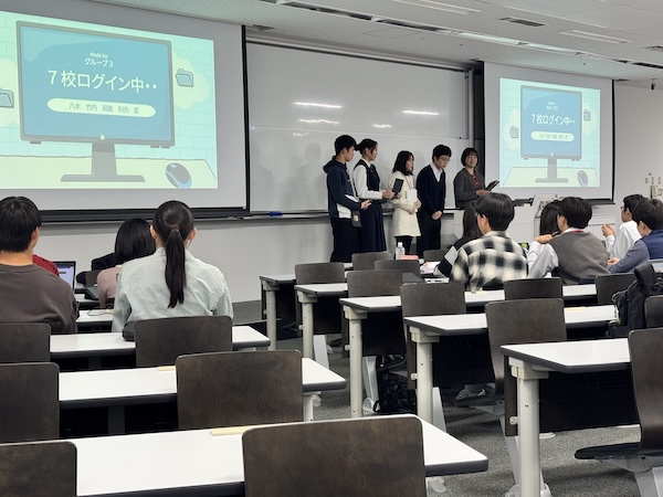 この日の課題「附属系属校でイベントを開催するとしたら!」に対して、学校をシャッフルした9班に分かれアイデアを出し合い、その結果をプレゼンテーションしました。