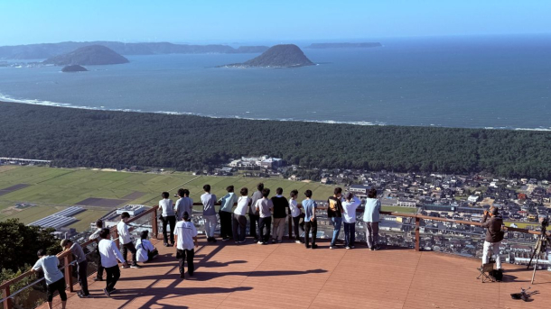 3日目は歴史、地理、産業、文化の4つのコースに分かれて、生徒が昼食場所や見学場所を企画したバスコースで佐賀県内を周った。私が行った地理コースでは、まず七ツ釜遊覧船に乗った。しかし、波が高く七ツ釜まで行けなかったのが残念だった。しかし、立派な呼子大橋が見られた。その後、行った虹の松原では日本有数の美しい白砂青松の浜辺を見ることが出来た。最後に行った鏡山展望台ではその虹の松原を上から望むことができ、貴重な景色を守らなければいけないという想いがわき上がってきた。