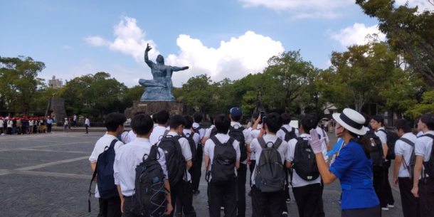 1日目には平和学習として、長崎の原爆による被害を体感した。実際に被爆した方からお話を聞いたとき、原爆の生々しい被害を感じることが出来た。核を取り巻く現状を変えることはできないのではないかという意見に対して、その方は言葉でしか現状を変えられないとおっしゃっており、その言葉に覚悟を感じた。講話の後は各地に残る被爆史跡を周った。長崎大学や山王神社などを見学した。変色した長崎大学の門柱や片方しか残らなかった山王神社の鳥居を見て、原爆の威力の大きさを実感した。もう原爆投下から80年も経った。原爆の恐怖が薄れつつある現状、私たちが核兵器の恐ろしさを伝えなければならないという責任を感じた。