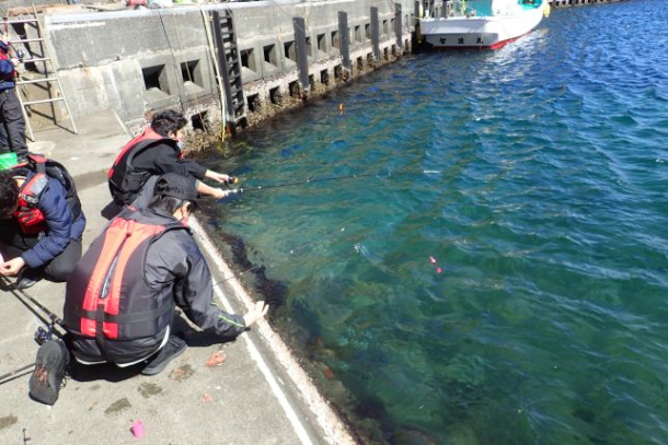3月末から生物や地形についての知識を深めるために、式根島の合宿に行きました。天気予報も雨予報の日が多く、船も出航するかわからない状態でしたが、何とか運よく予定通りに行って帰ってくることができました。現地で釣りをしました。