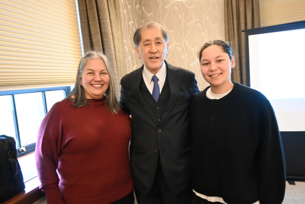 On the night of the 29th, President Tanaka delivered the lecture “Reflections on Professor Bradley M. Richardson and the Legacy of The Ohio State University” (organized by The Institute for Japanese Studies, Department of East Asian Languages and Literatures, Department of Political Science, and the Mershon Center for International Security Studies). The lecture was attended by special guests including Hajime Kishimori, Consulate General of Japan in Detroit; David Cook, Honorary Consul of Japan in Columbus, Ohio; Dr. Hiroyuki Fujita, Founder and CEO of Quality Electrodynamics (QED), former Chairman of the Board of Trustees of The Ohio State University, and recipient of an Honorary Doctoral Degree from Waseda University, along with his wife Mikiko; as well as OSU faculty and staff, students, the family of the late Professor Richardson, and many other attendees.