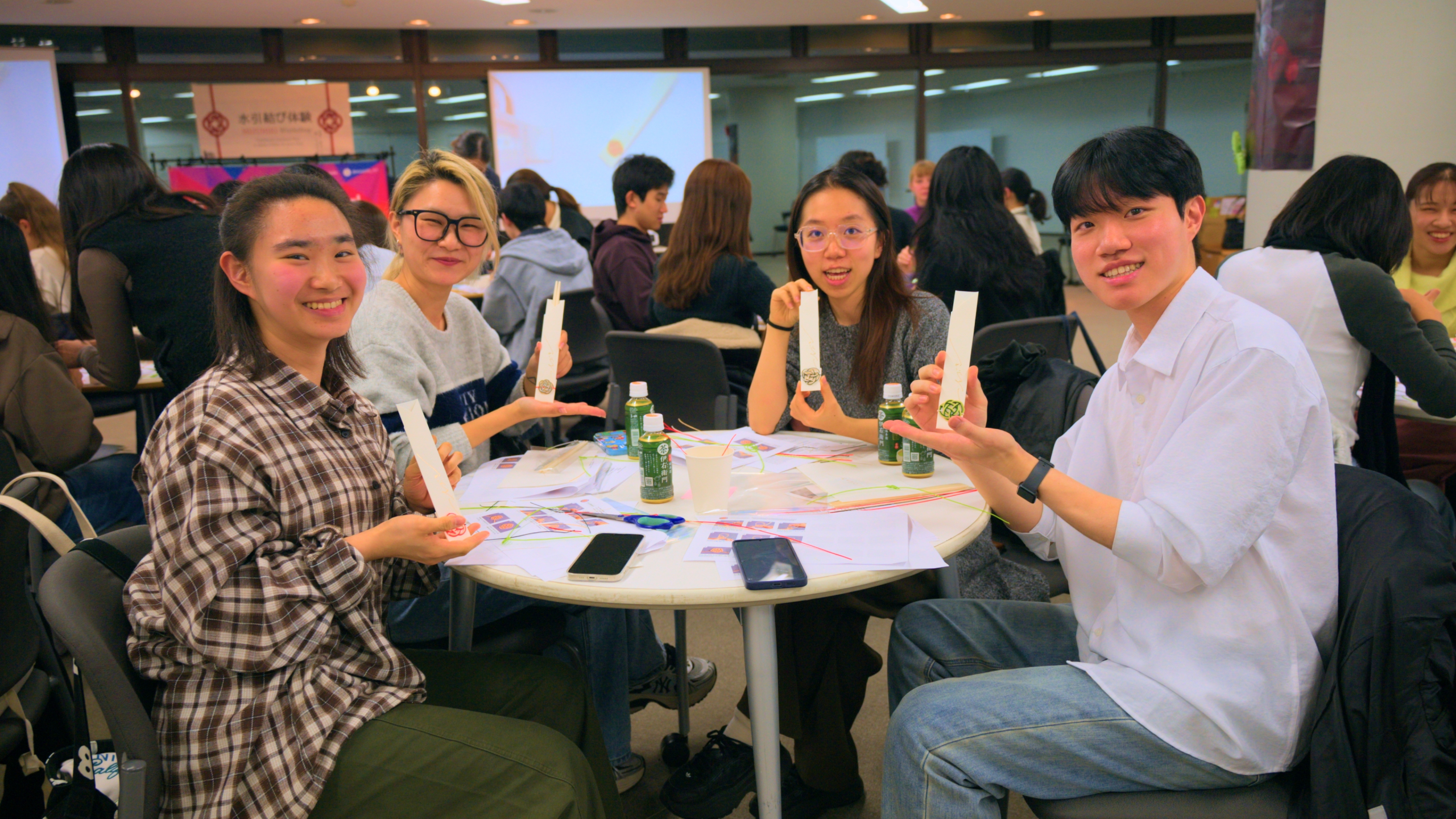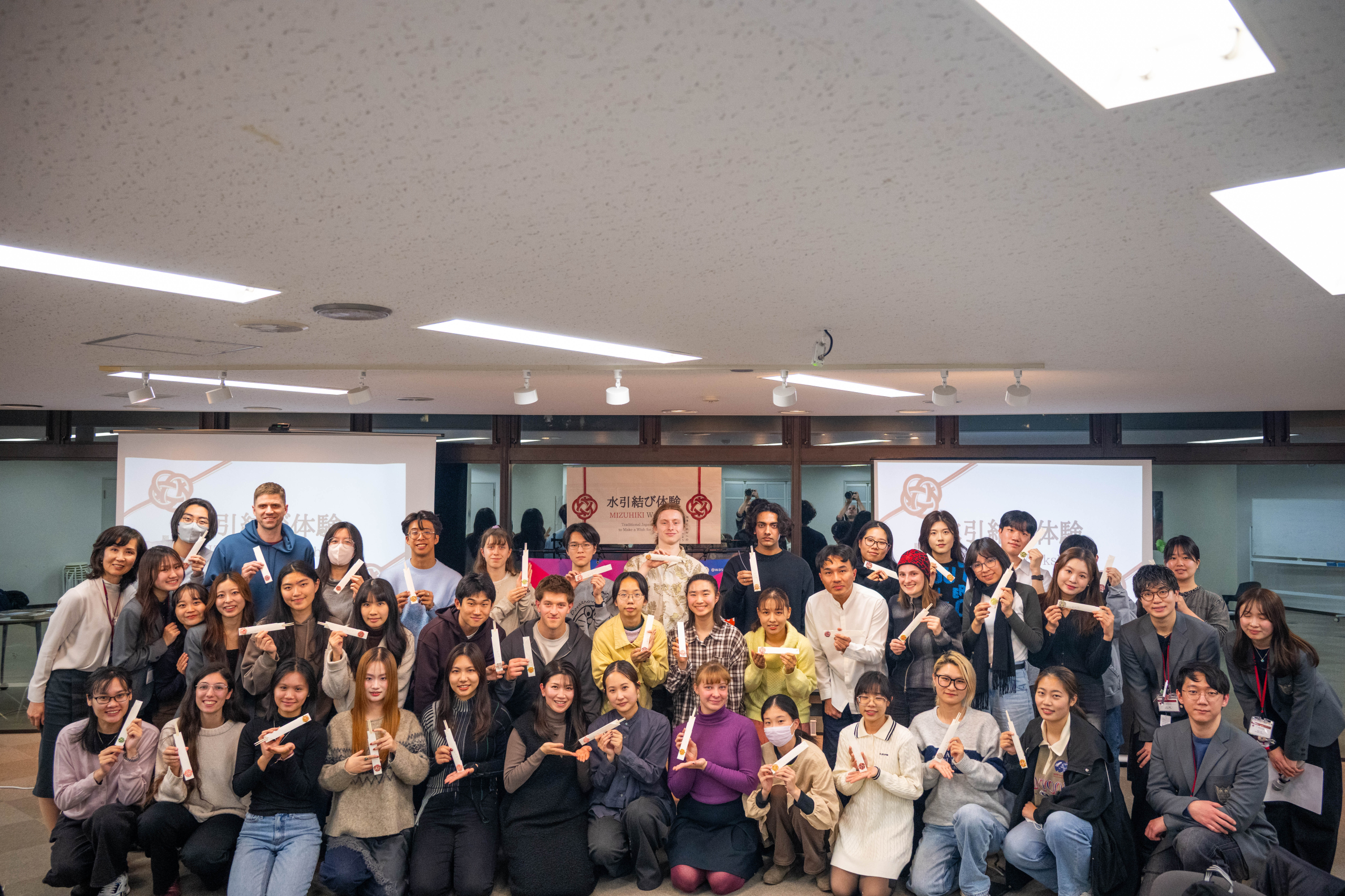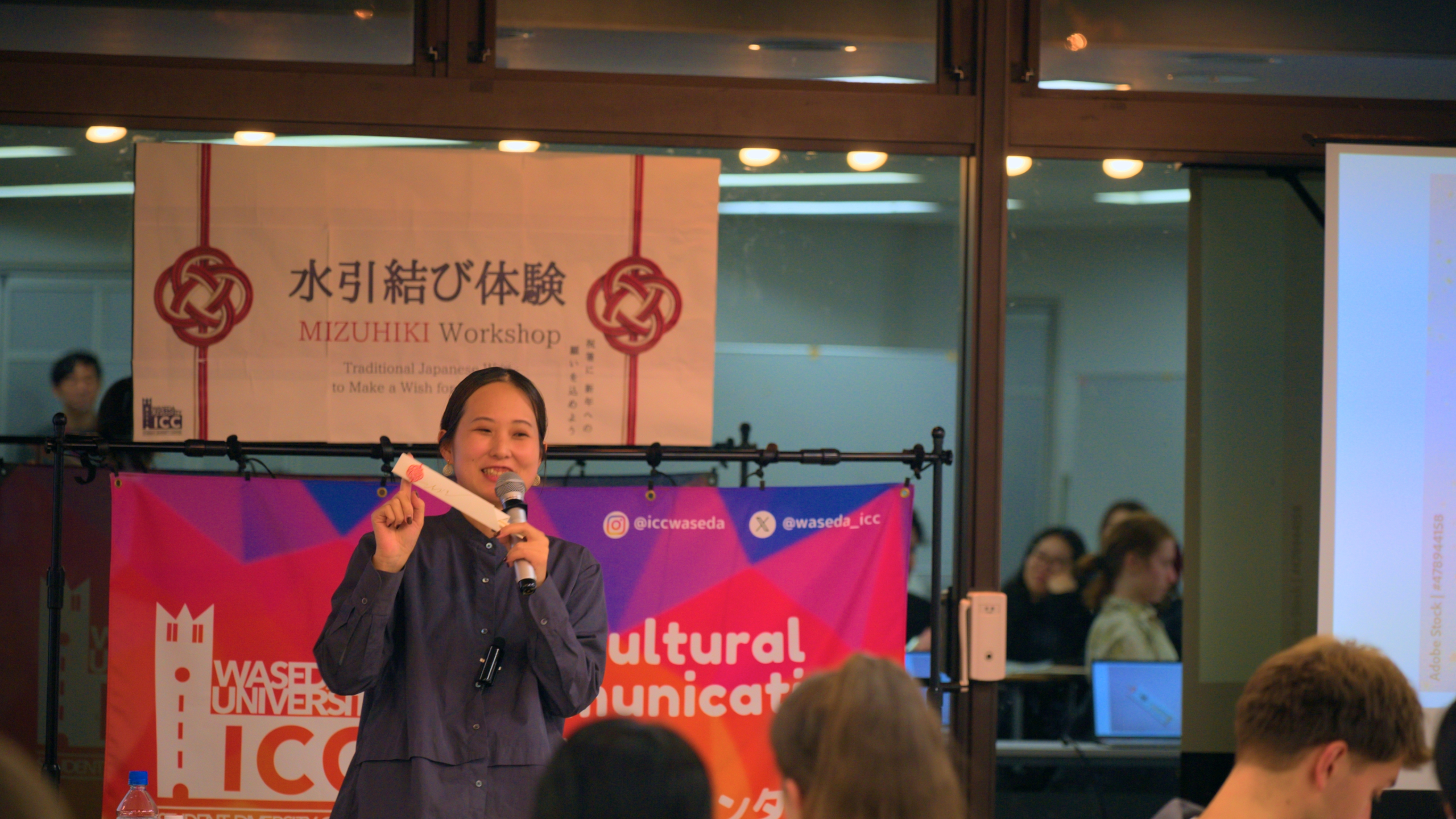 On Tuesday, November 25th, around forty participants gathered in the Okuma Garden Hall of Waseda University for a workshop dedicated to the traditional Japanese art of mizuhiki. The event was hosted by Waseda University’s ICC (Intercultural Communication Center), an organization committed to connecting students with diverse backgrounds and the wider community through interactive sessions. Through hands-on instruction, attendees explored the craftmanship and symbolism behind mizuhiki and learned how to tie the characteristic knots all while sharing New Year’s traditions across different countries.