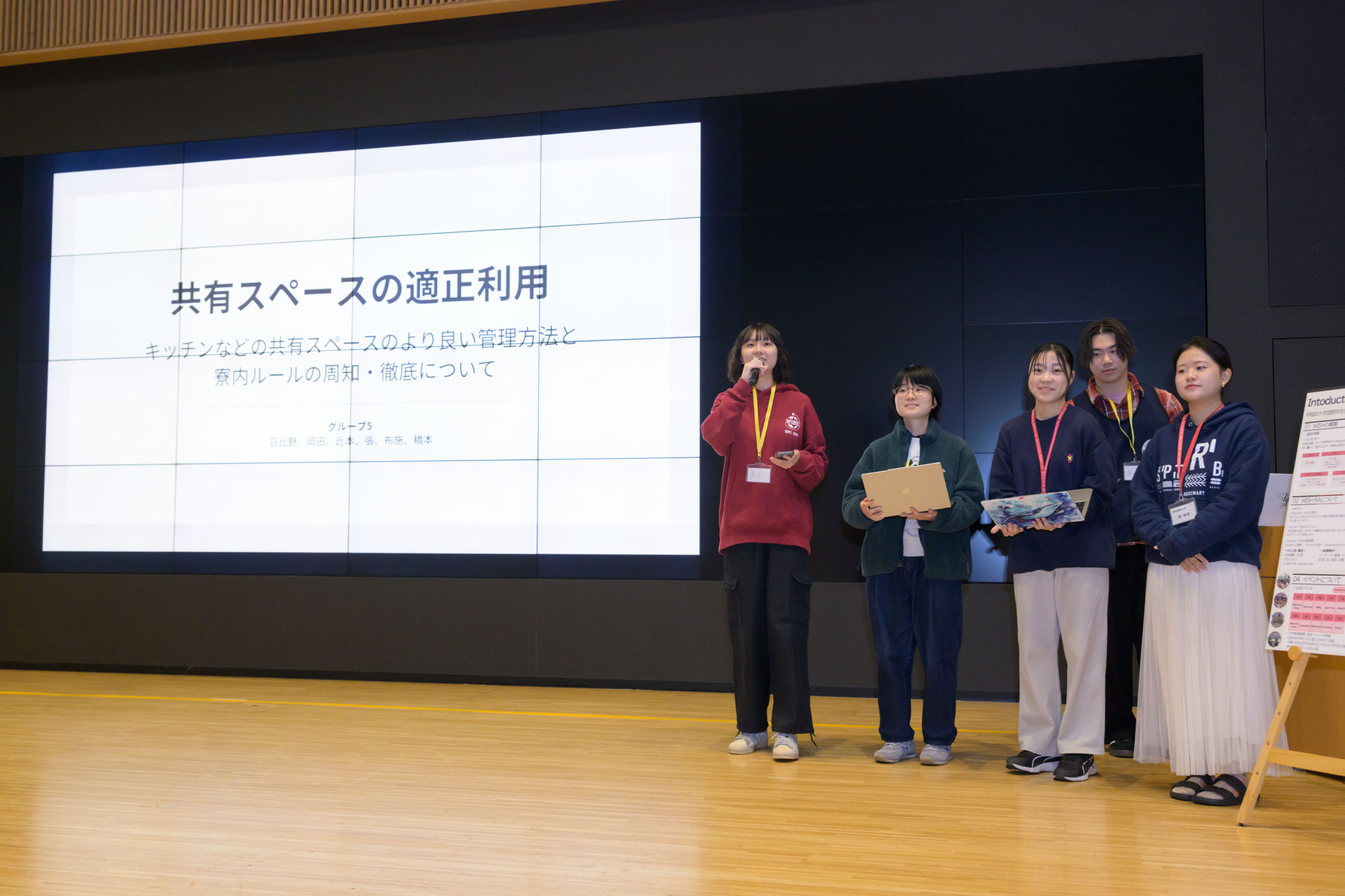Day two began with the preparation time for the presentation. Our team made presentation slides based on our collections of sticky notes we used the prior day. We presented the idea that the dorm should be a place residents would love to stay, with suggestions to include a piano for those who love music, a gym for those who like to train their bodies, libraries for those who want to read books, and to emphasize the importance of maintaining daily contact with RAs. We found that increasing residents’ happiness are important factors in creating a good dormitory and that is possible with the efforts of RAs. RAs should be recognized as the backbone of dormitories. Two professors from Keio University graded the presentations and two teams got awards. Listening to each presentation, I was surprised that everyone made a fantastic presentation in less than a day. This showed their passion towards their dormitories, and I got a lot of motivation to continue working as an RA.