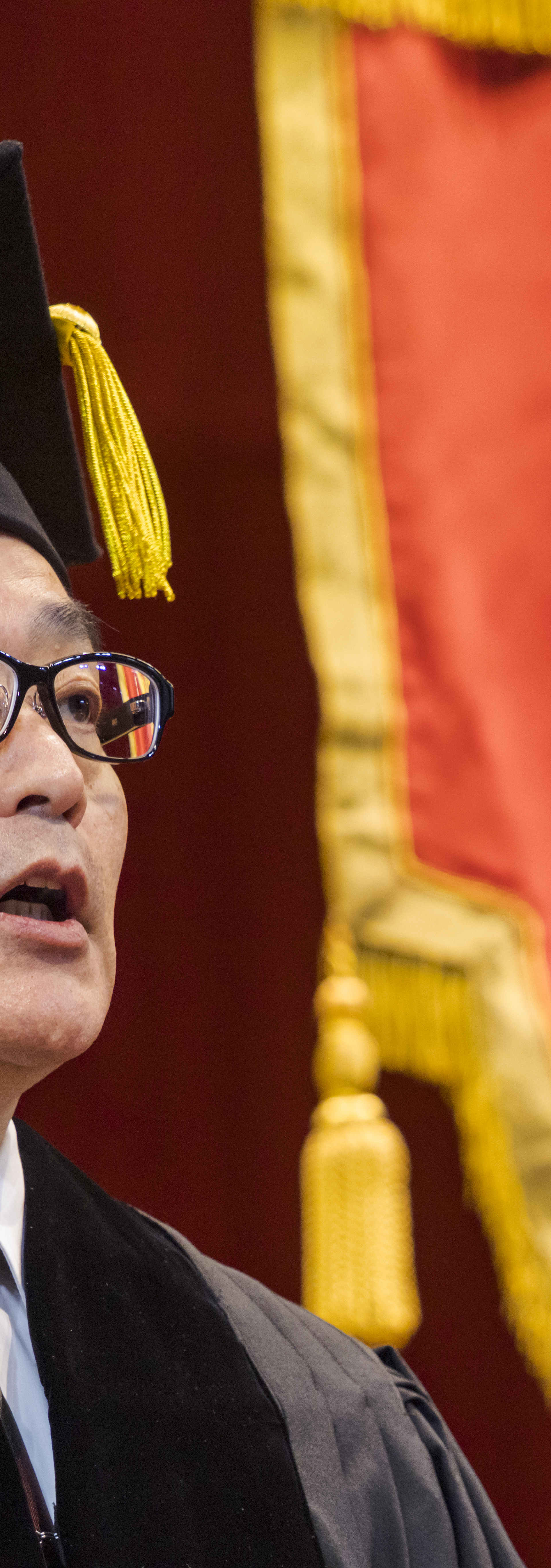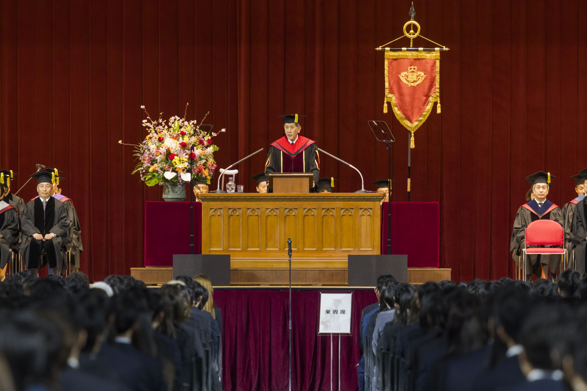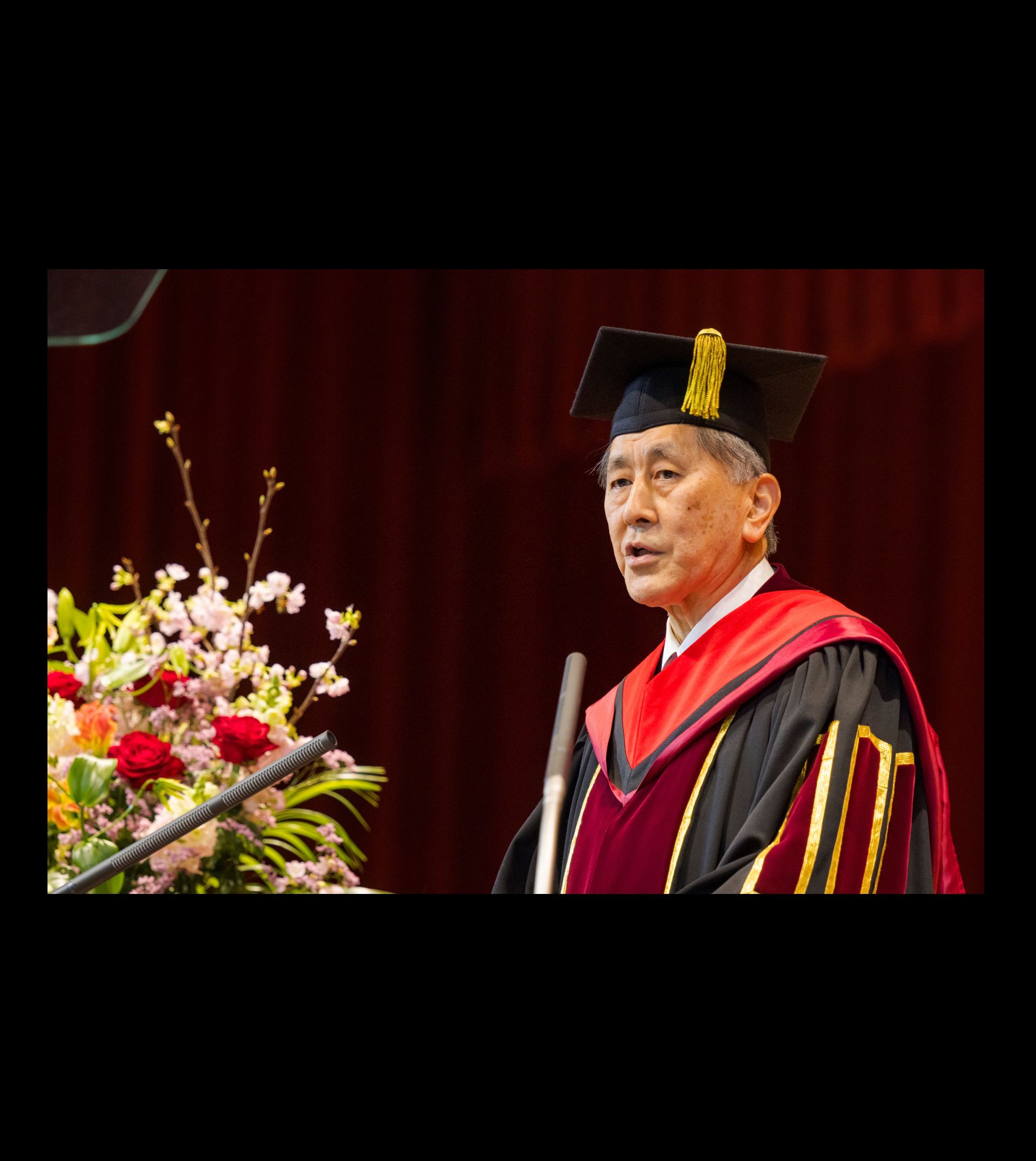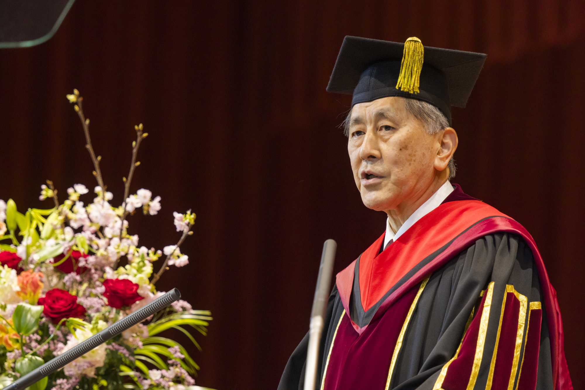 今回の入学式には、私自身にとっても特別な思いを込めております。と申しますのは、私は今年の9月20日で総長の任期を2期8年務めて退任となりますので、私が入学式で式辞を述べるのはこれが最後になるからです。