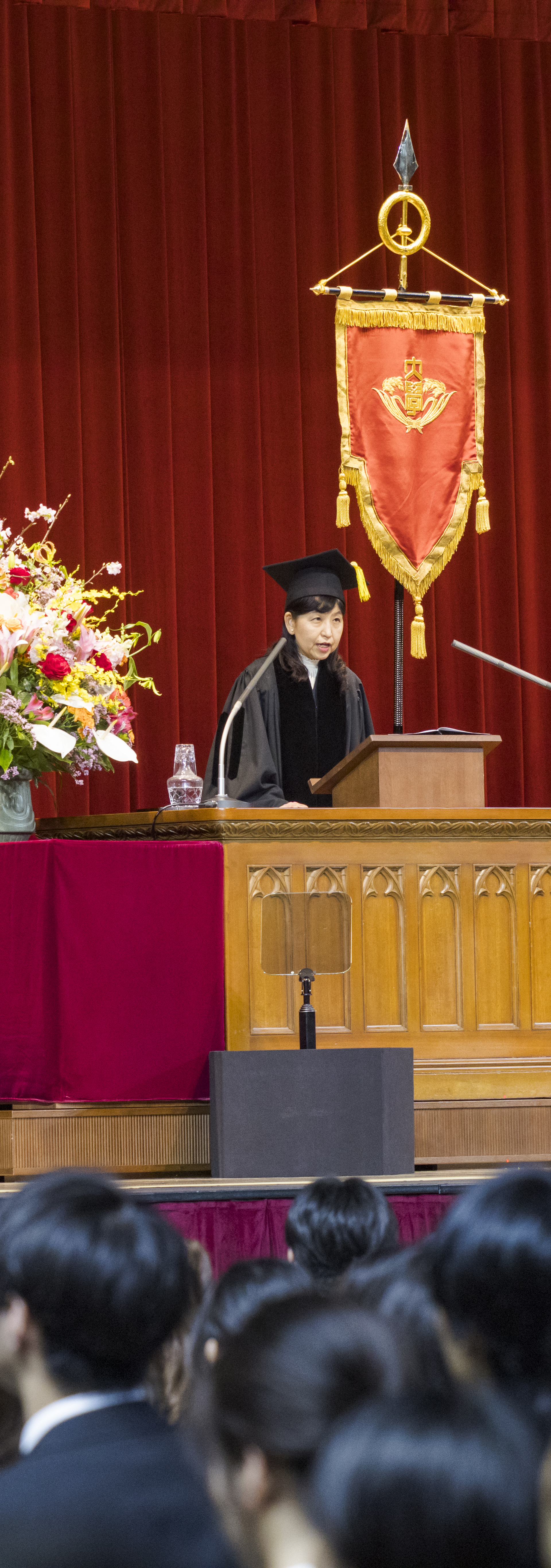 新入生の皆さん、ご入学おめでとうございます。新入生を育て、支えてこられたご家族・ご親族の皆様も、たいへんお喜びのことと存じます。心からお祝い申し上げます。