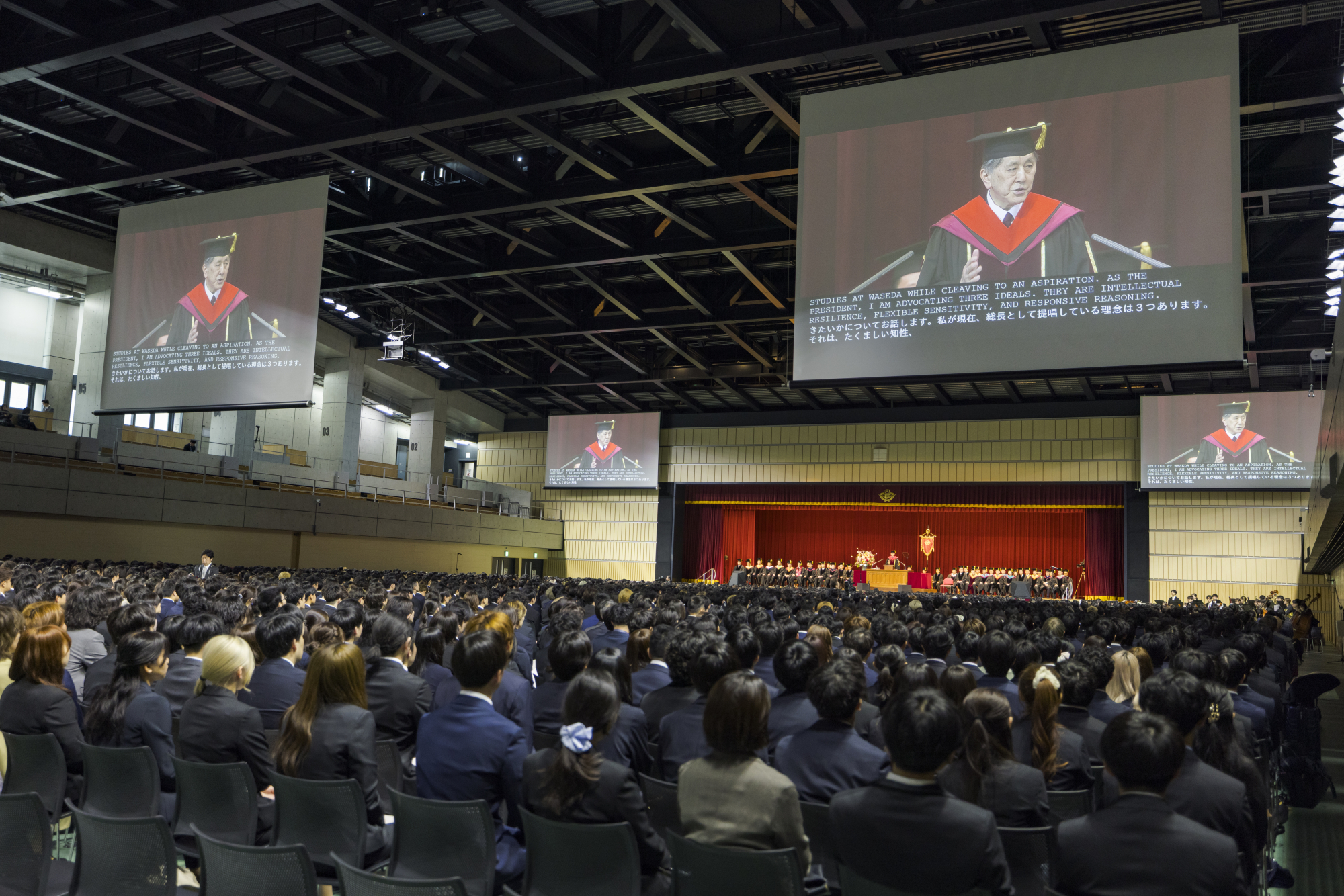 2026年4月1日(水)・2日(木)に、戸山キャンパスの早稲田アリーナにて、2026年度学部、芸術学校および大学院入学式を執り行いました。
