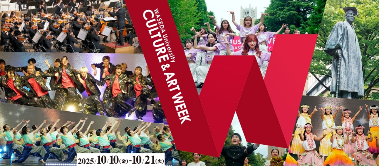 この早稲田大学の多種多様な文化・芸術を発信するイベントが「早稲田文化芸術週間」です。今年は10月10日(金)から10月21日(火)まで開催し、コンサート、ライブ、講演会、展示、プレゼント企画など、約30もの企画を一斉開催します。