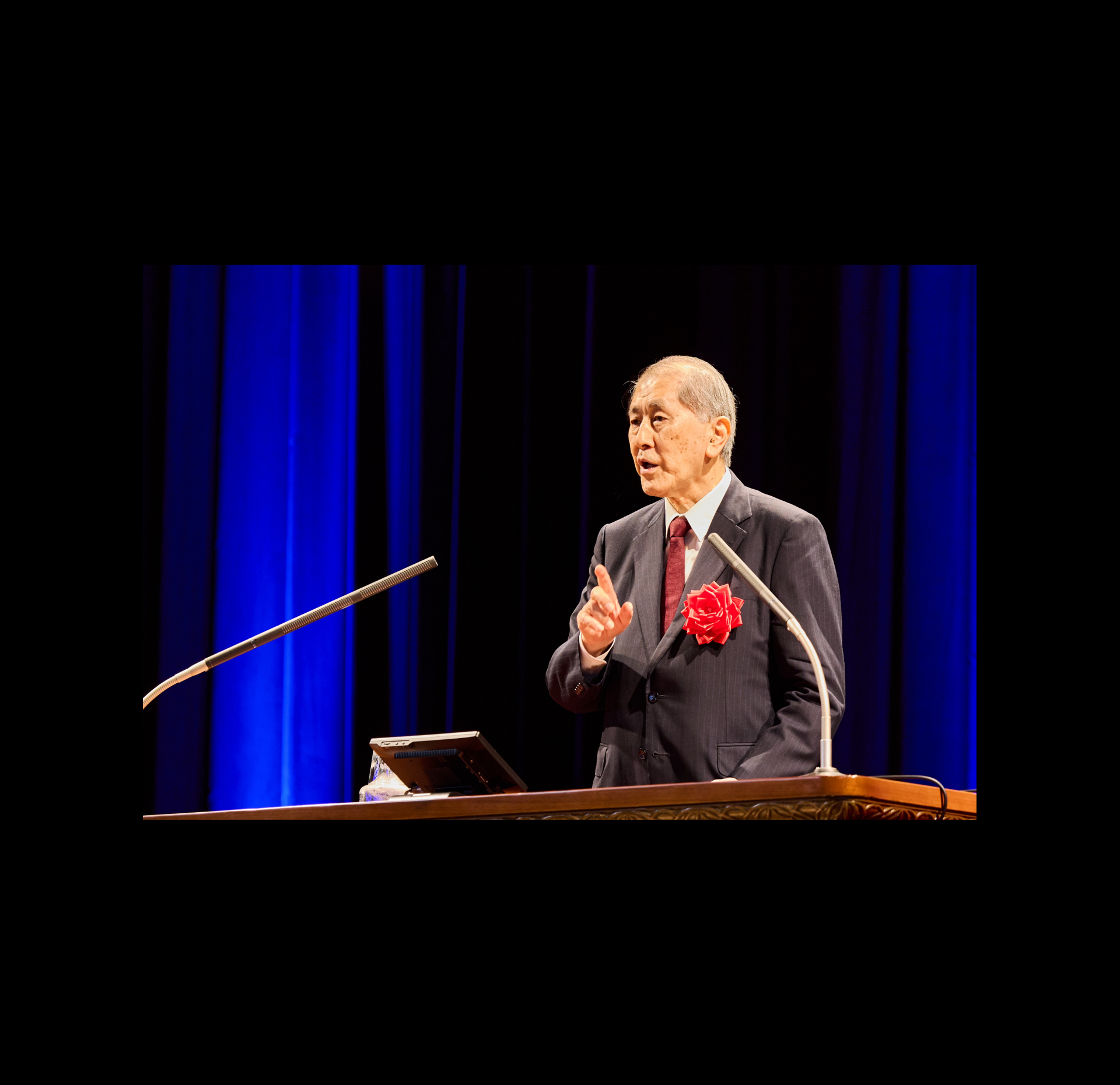 その後、早稲田大学校友会の萬代晃代表幹事が挨拶。早稲田大学を卒業した69万人の校友に対し、メッセージを伝えました。