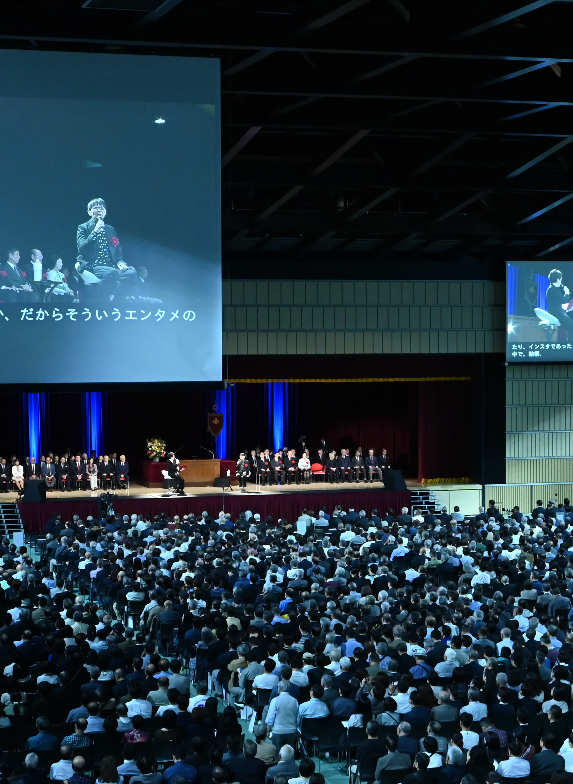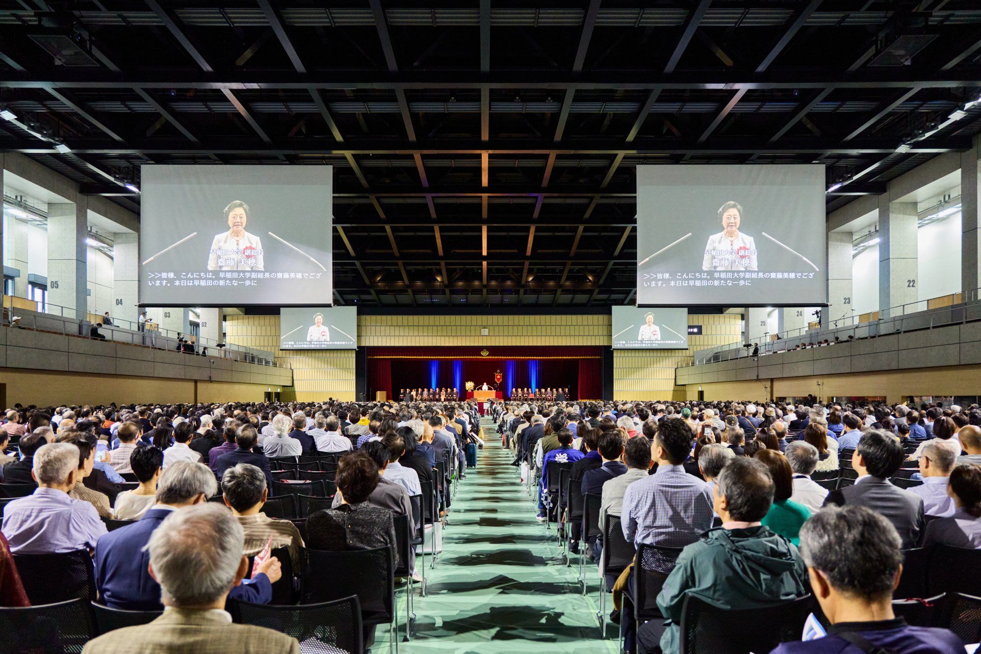 2032年に創立150周年を迎える早稲田大学。その先を見据えた“2050年の早稲田のあるべき姿”として、「世界人類に貢献する大学」への進化を目指す改革が、「創立150周年記念事業」です。今回開催されたのは、記念事業のオープニングセレモニー。会場となった戸山キャンパスの早稲田アリーナには、多くの卒業生が来場しました。