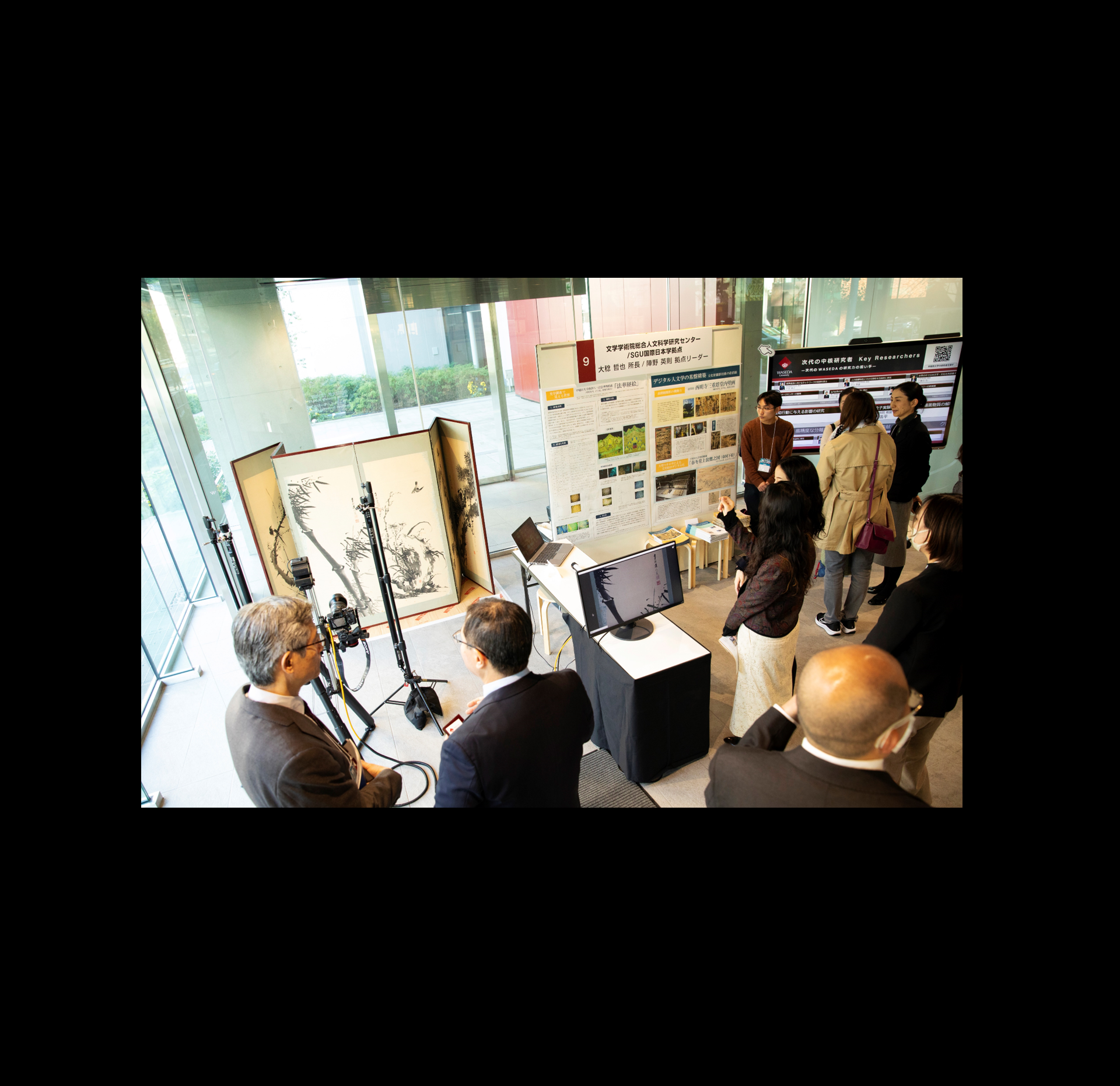ブースの一つ、「文学学術院総合人文科学研究センター/SGU国際日本学拠点」のテーマは、「デジタル人文学の基盤構築」。機材を用いた文化財撮影技術が、実物とともに展示されました。
