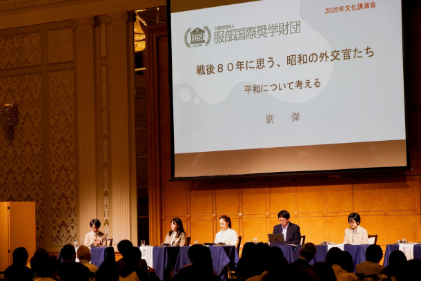 昼食懇親会を挟み、午後には劉 傑 教授(本学・社会科学総合学術院)による講演会「戦後80年に思う昭和の外交官たち―平和について考える―」が開催され、歴史学・平和学を専門とする現役奨学生や元奨学生によるパネルディスカッションも行われました。