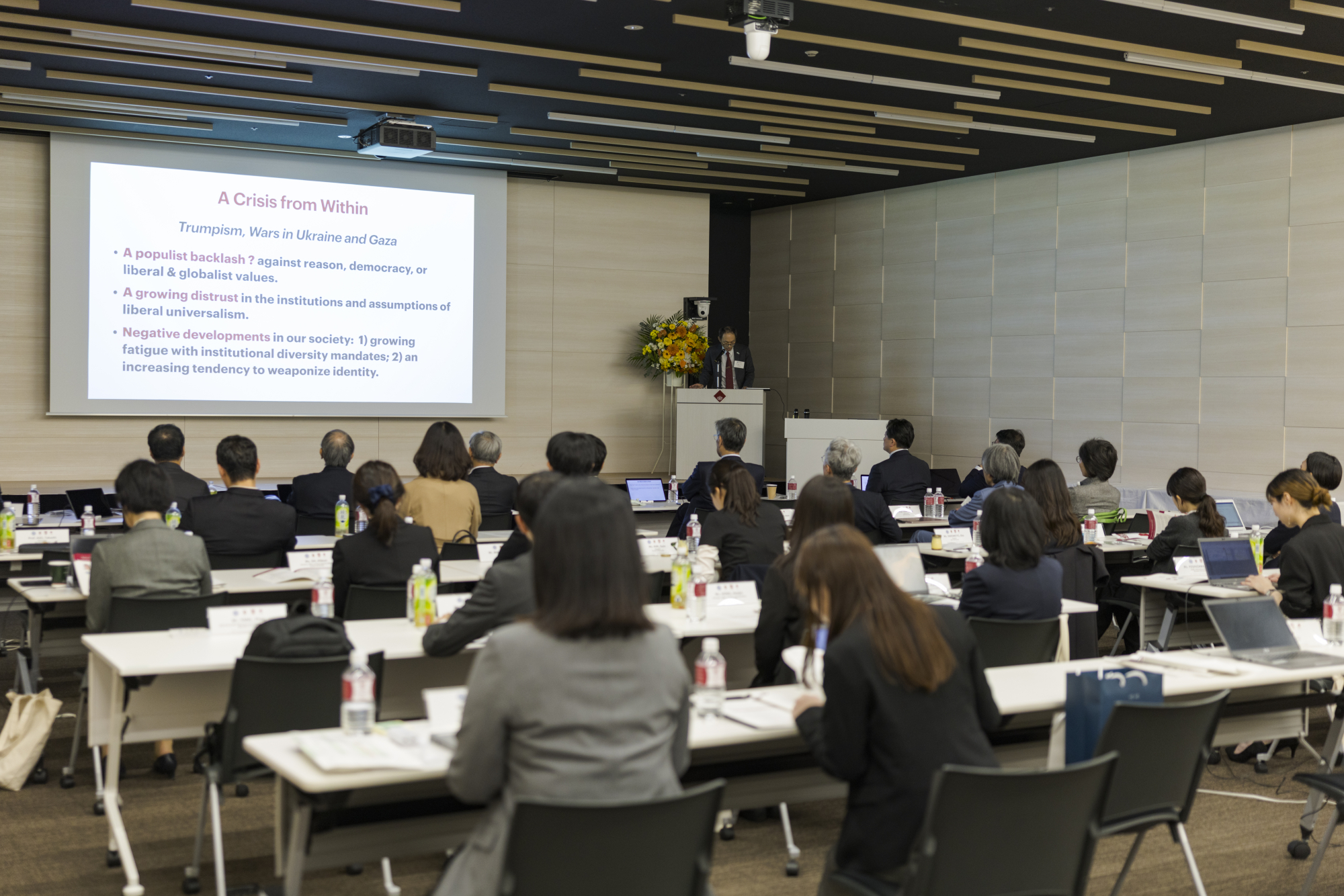 今回のテーマは「Humanities at Risk」です。学長セッションでは、“Humanities at Risk” をめぐり、人文学の現在と未来について4大学が直面する共通課題や各大学の取り組みについて率直に意見が交わされ、人文学教育をいかに継承・発展させるかが検討されました。午後の研究者セッションおよび学生セッションでは、テーマをあえて “Humanities at Risk?” と疑問形にし、文学、哲学、歴史、芸術といった多様な学問領域がAI時代にどのような意味を持つのかについて、自由かつ創造的な議論が展開されました。幅広い世代が様々な視点から人文学の可能性が語られ、参加者同士の活発な意見交換が行われました。