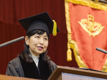 皆さんのこれからの学生生活が、知的好奇心に満ち、勇気ある挑戦にあふれ、生涯大切な仲間との出会いに恵まれることを願い、私の祝辞に代えさせていただきます。