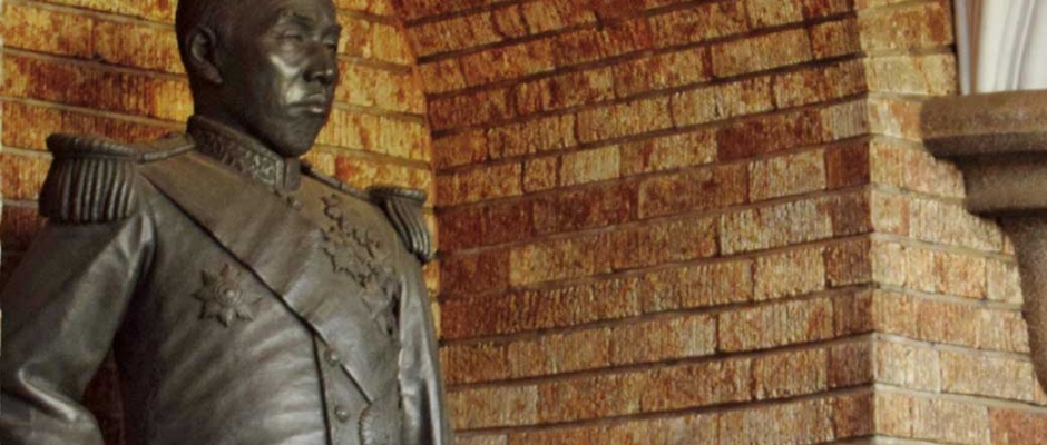 陽光にまばゆく輝く壁面、 夜には温かな灯りがアーチを照らす講堂正面。 その偉容と対比をなすごとく、北面のロマネスク調の歩廊は、 四季の移ろいに彩りを変える大隈庭園の緑を、 いつも柔らかくうけとめている。 歩廊から庭園を見 … 続きを読む 大礼服姿の田舎武士
